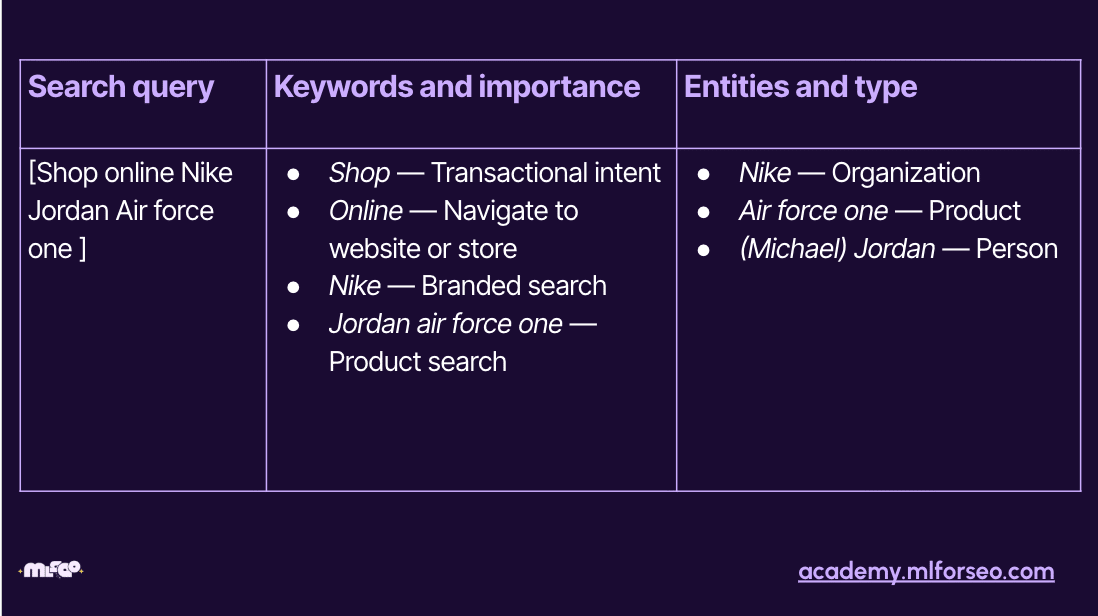 Traditional keyword-based thinking treats a query like “tokens with intent.” EAV treats it like “concepts with relationships.”