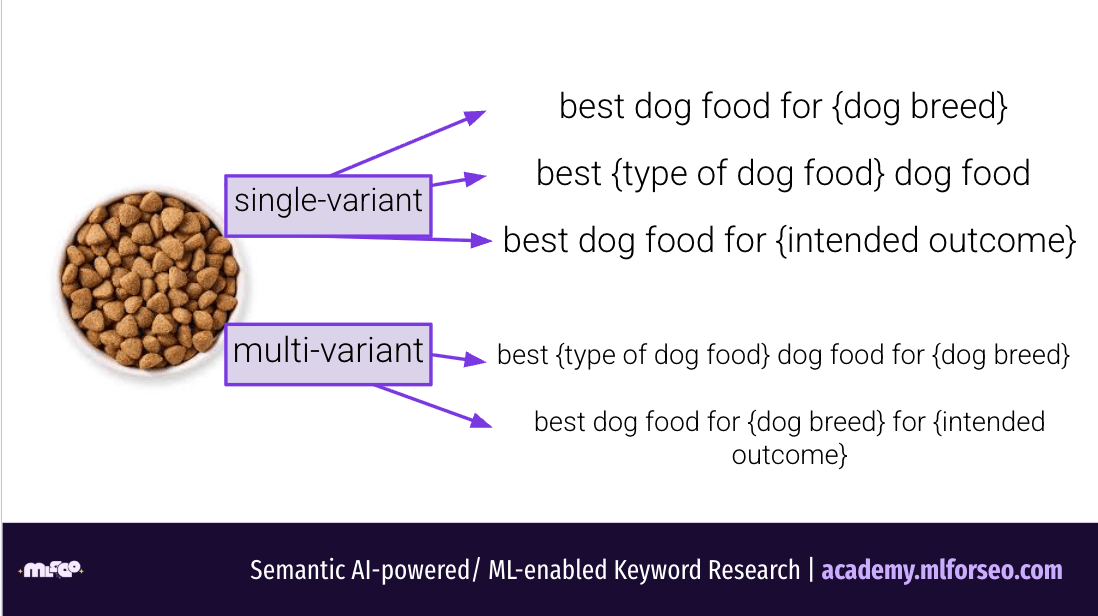 [Entity] + [Attribute:Variable] → “dog food kibble”